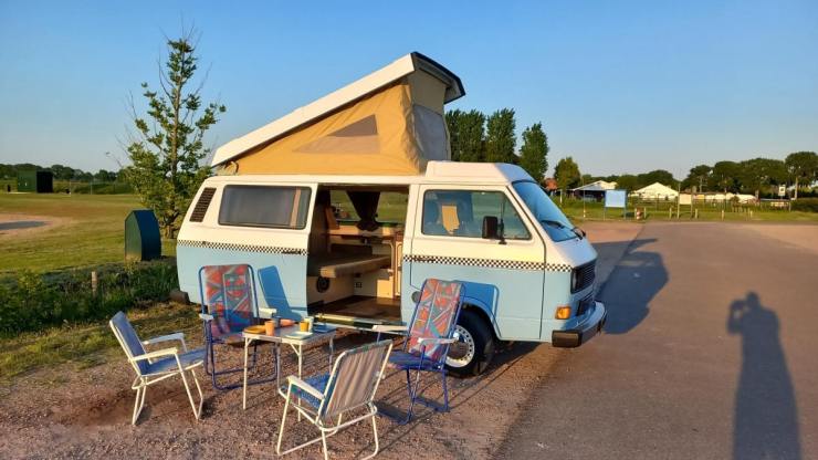 Stitch is een vrolijke retro camper. Een echte originele Volkswagen Westfalia Joker. Heerlijk om even helemaal relaxed en zen op vakantie te gaan. The most smiles per mile!